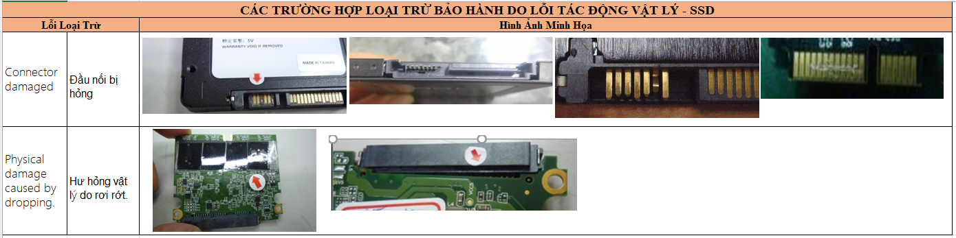 Hình ảnh minh họa một số trường hợp lỗi vật lý do người sử dụng, lắp đặt, bảo quản: